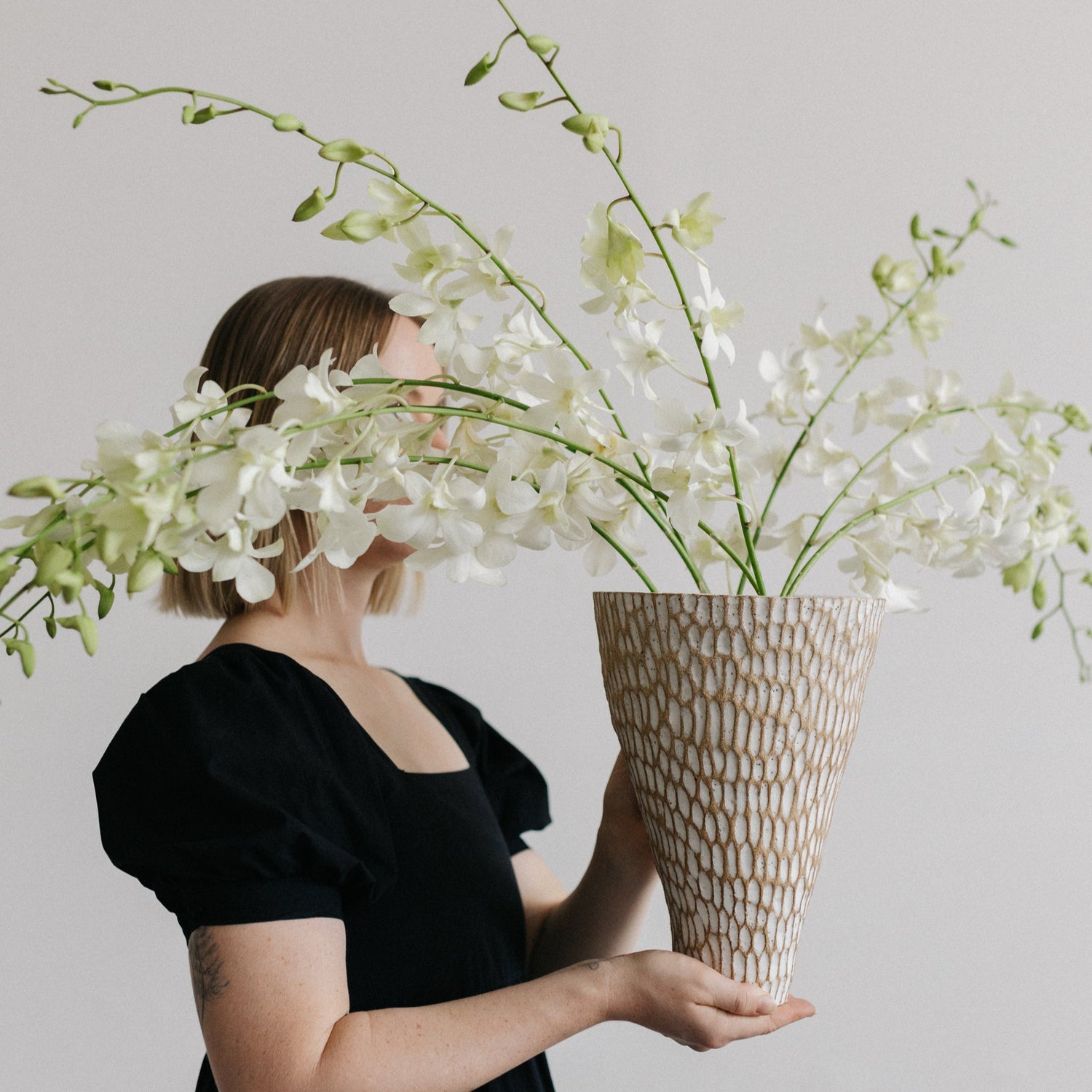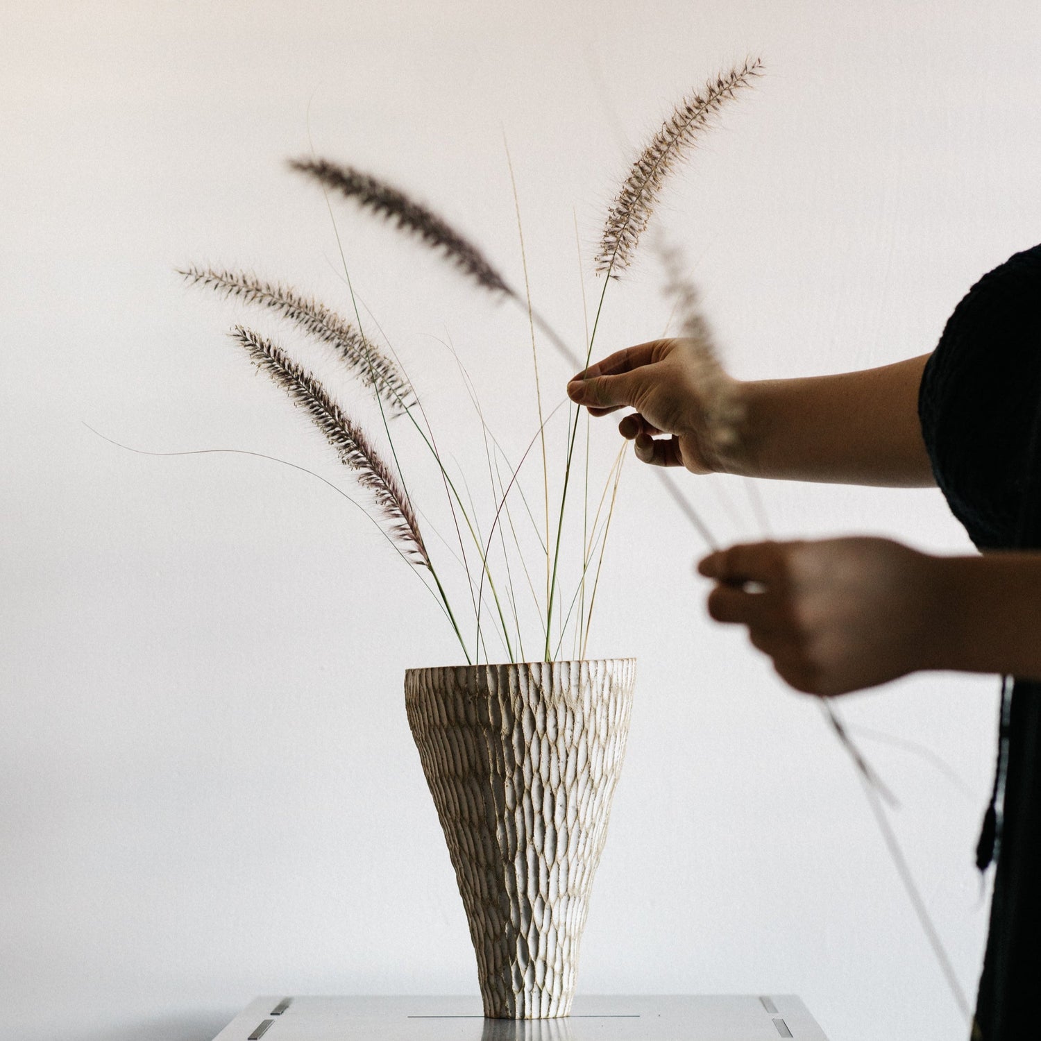 Each piece is made to be lived with - foliage picked up on a walk, flowers gathered from the garden, seed pods brought inside or a visit to the local florist. An invitation to slow down, to notice, and to arrange something simple and beautiful by hand. Through these small acts, the vases become a way to honour nature’s beauty and our instinct to gather, place, and appreciate.